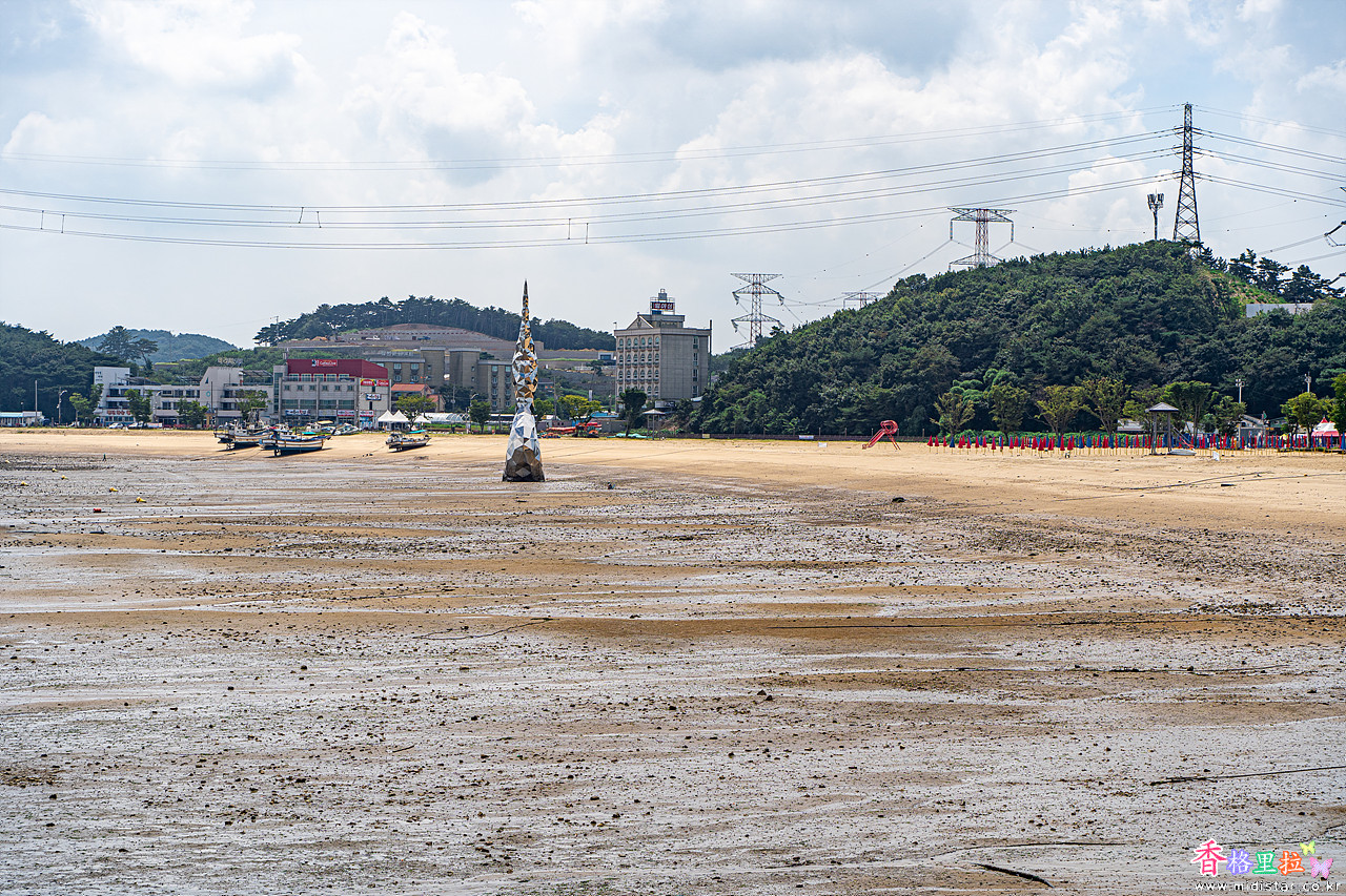 예전에는 모래가 없는 뻘밭이었던 것으로 기억하는데 모래를 갖다 부어서 모래해변이 조성된 것 같다.