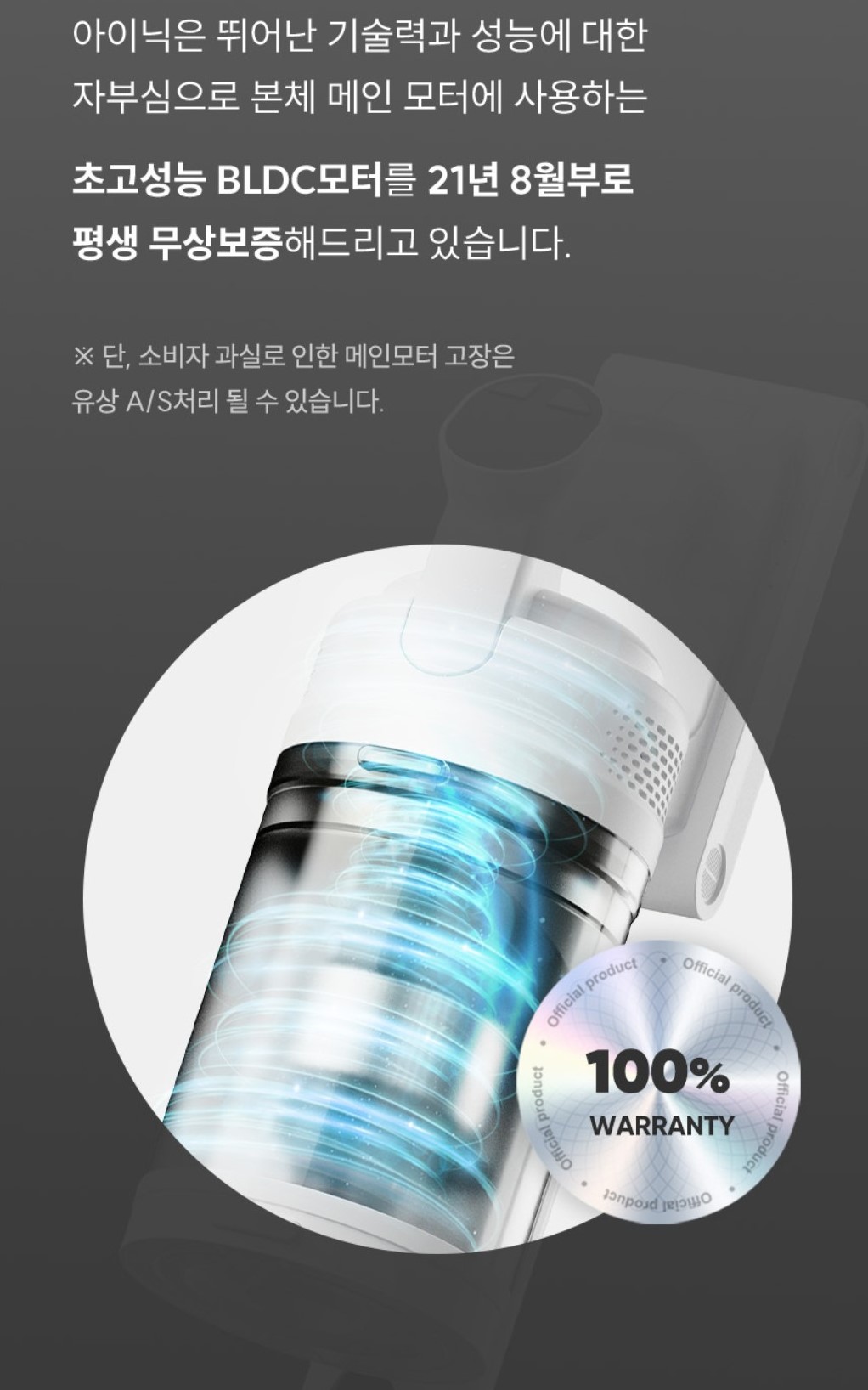 모터부분은 평생 무상보증이라는 점도 마음에 든다.