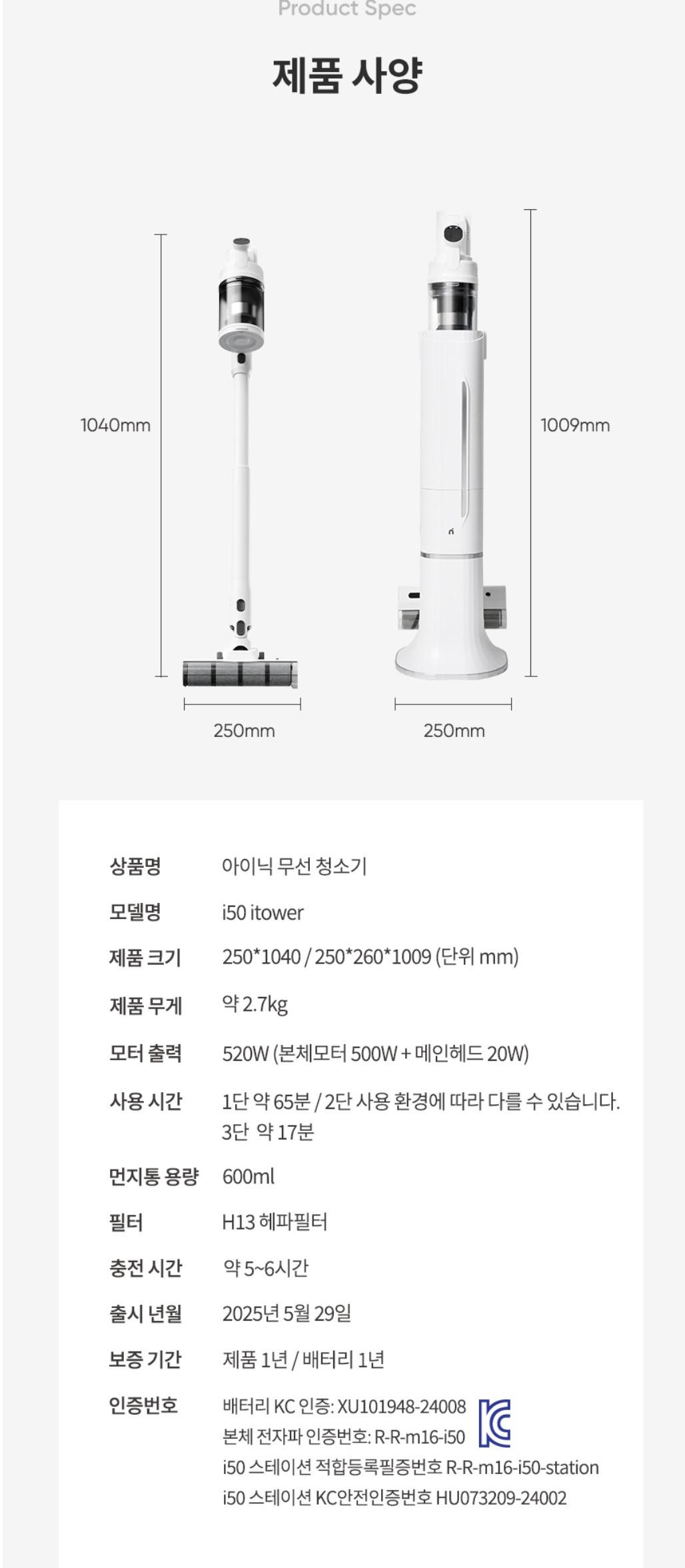 아이닉 무선청소기 스테이션 i50 iTower