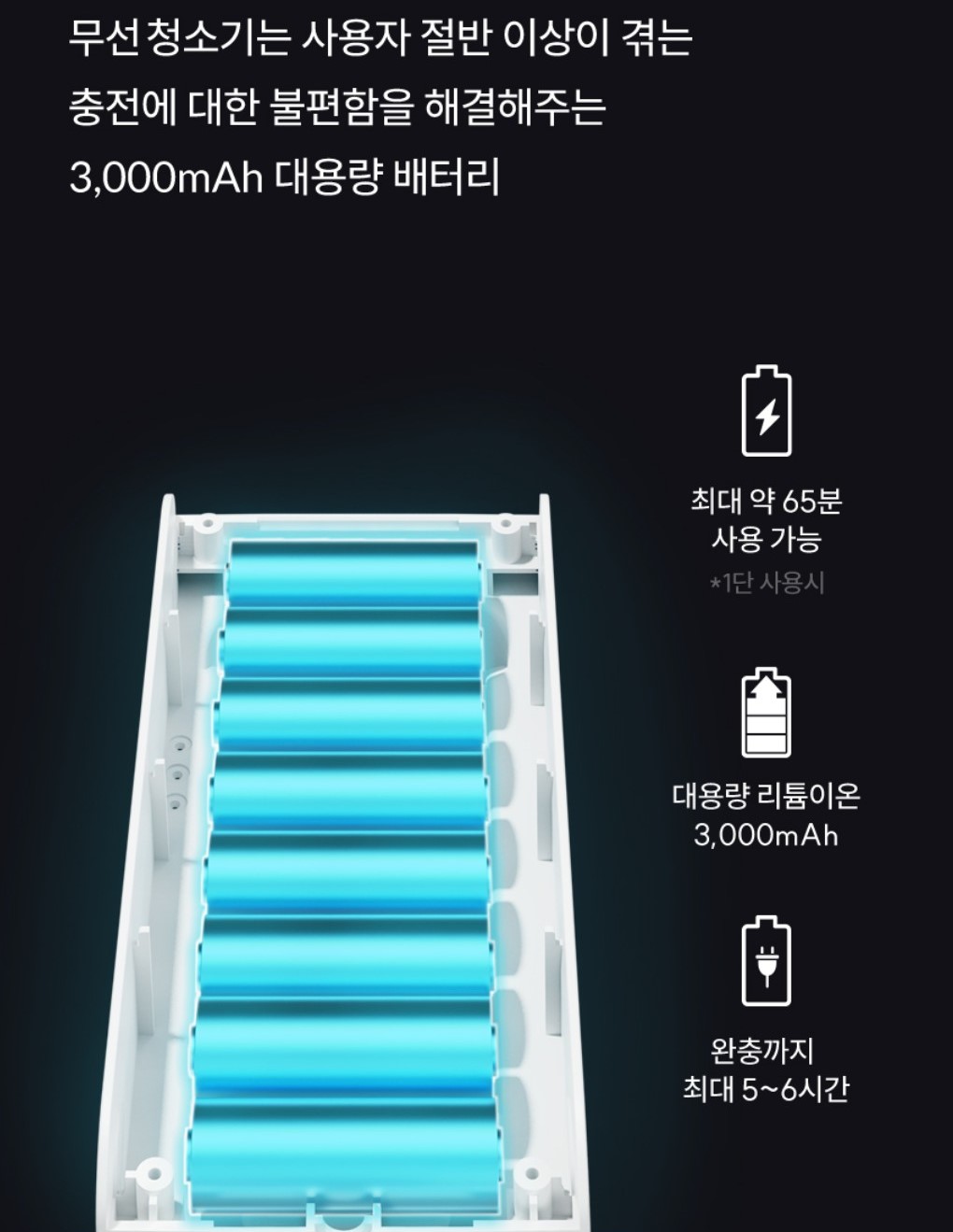 파란불 3개가 켜진 부분이 배터리팩이다.
