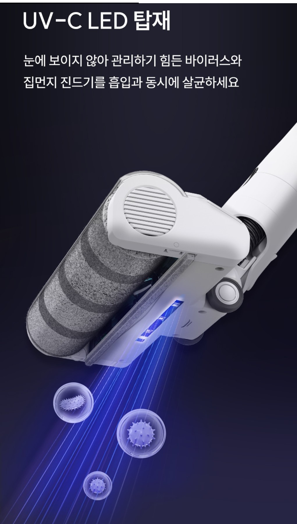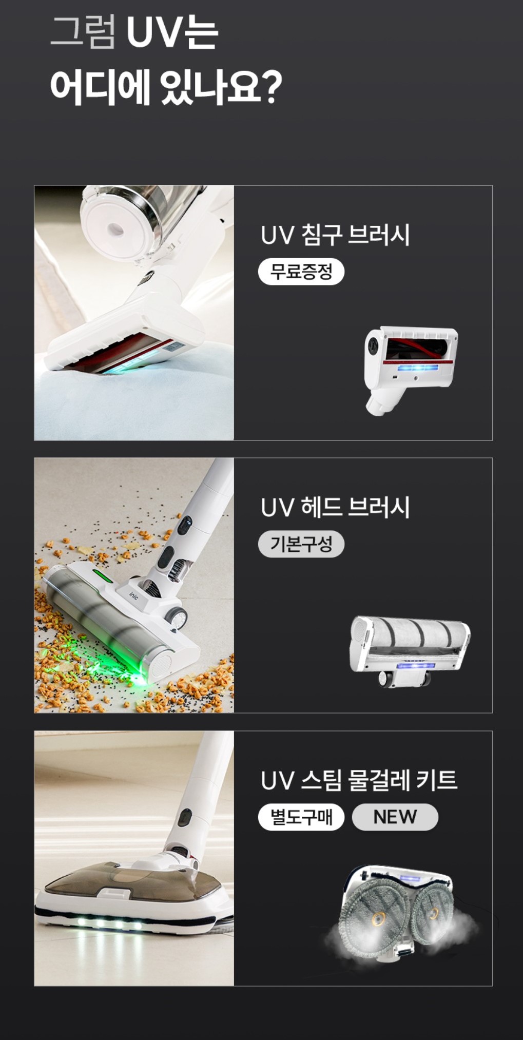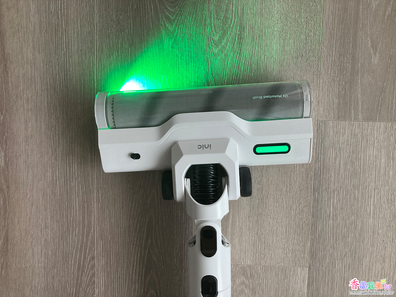 오른쪽이 침구 청소를 할 수 있는 UV 침구 브러시이다.