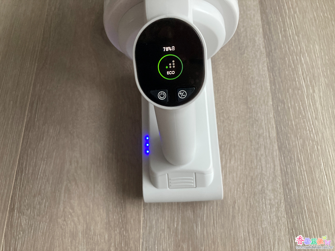 아이닉 무선청소기 스테이션 i50 iTower에 무선 청소기 i50을 장착한 상태.
