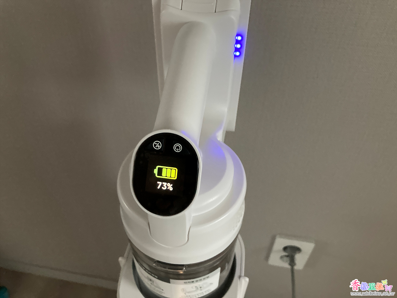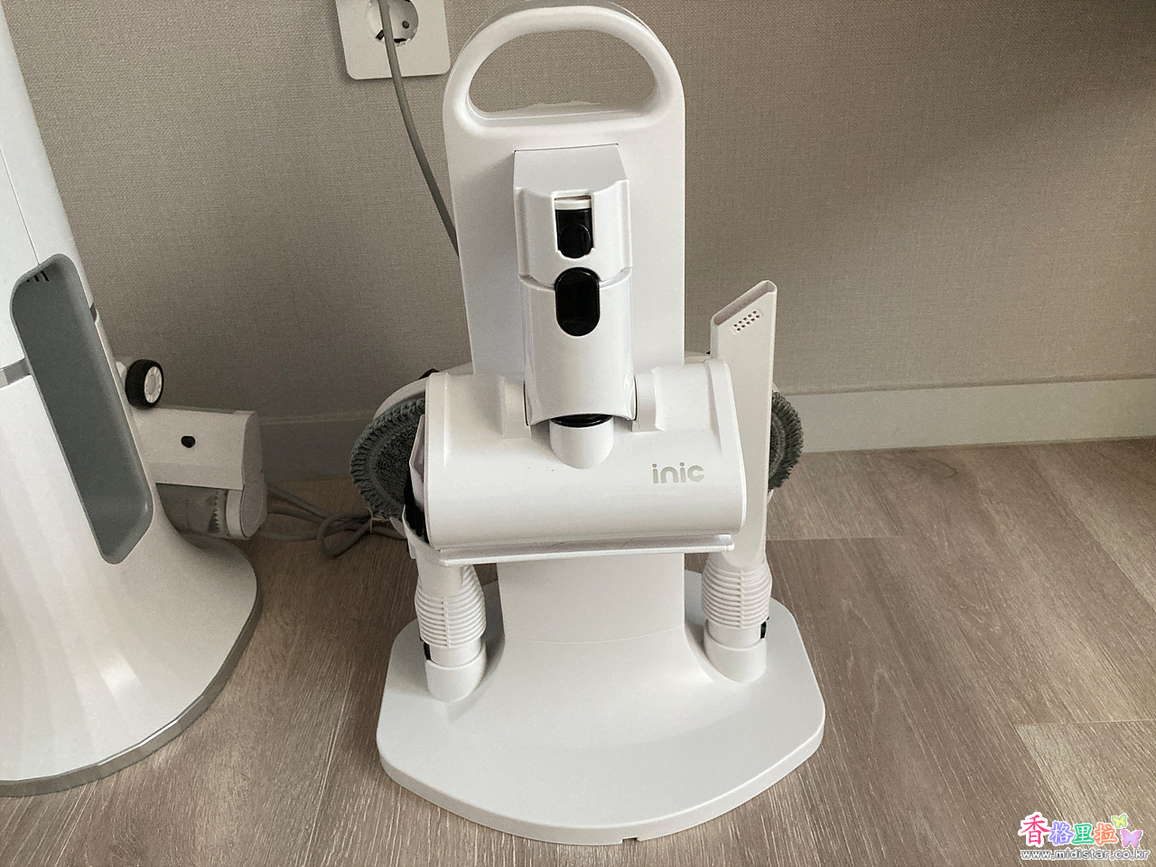 아이닉 무선청소기 스테이션 i50 iTower에 무선 청소기 i50을 장착한 상태.