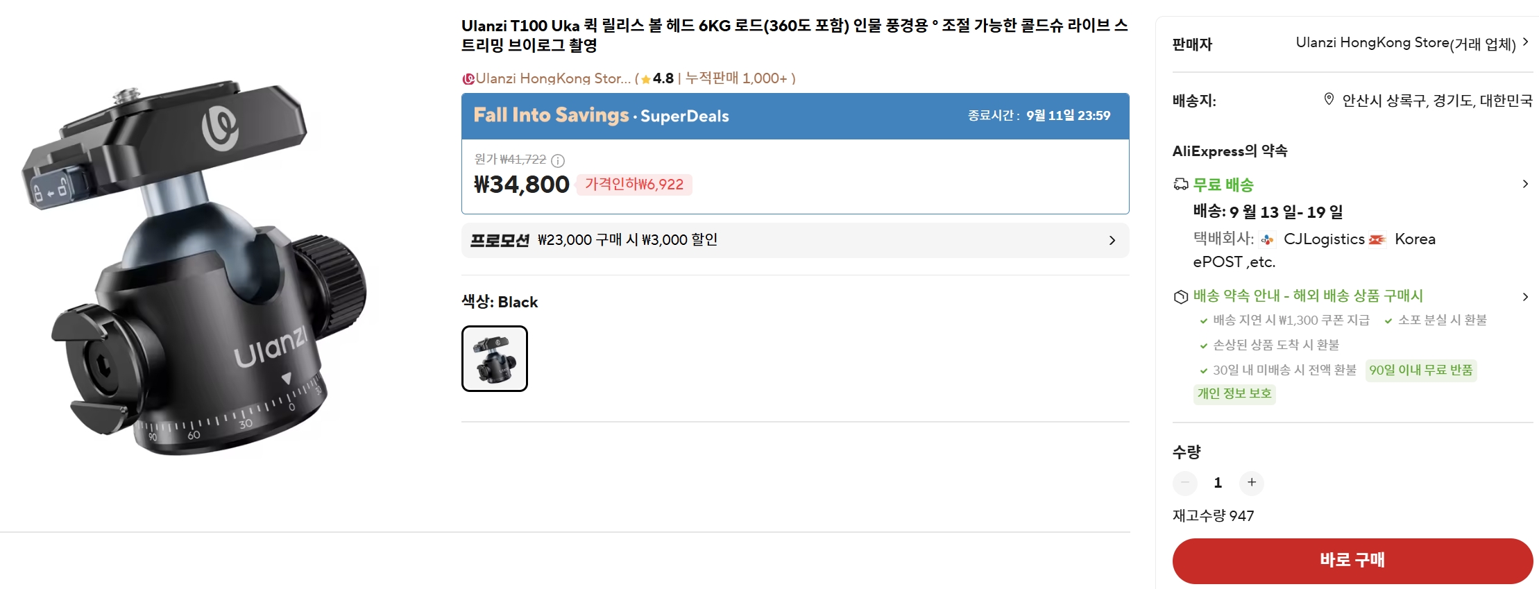 삼각대용 볼헤드 울란지 T100 구입 개봉기