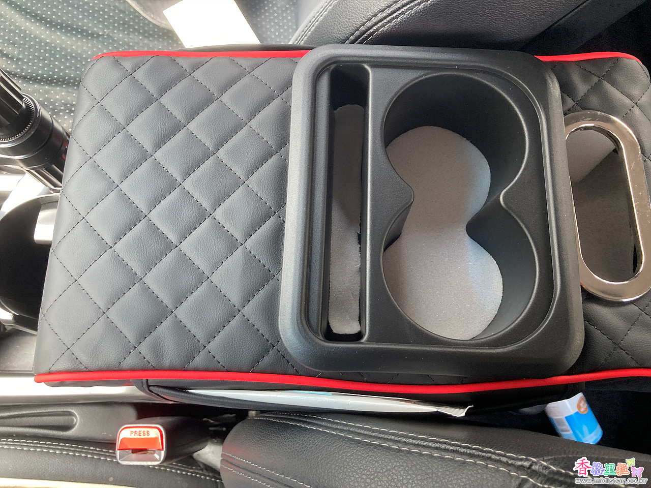 센터 콘솔박스 위에 얹어서 팔걸이로 사용하는 제품이다.