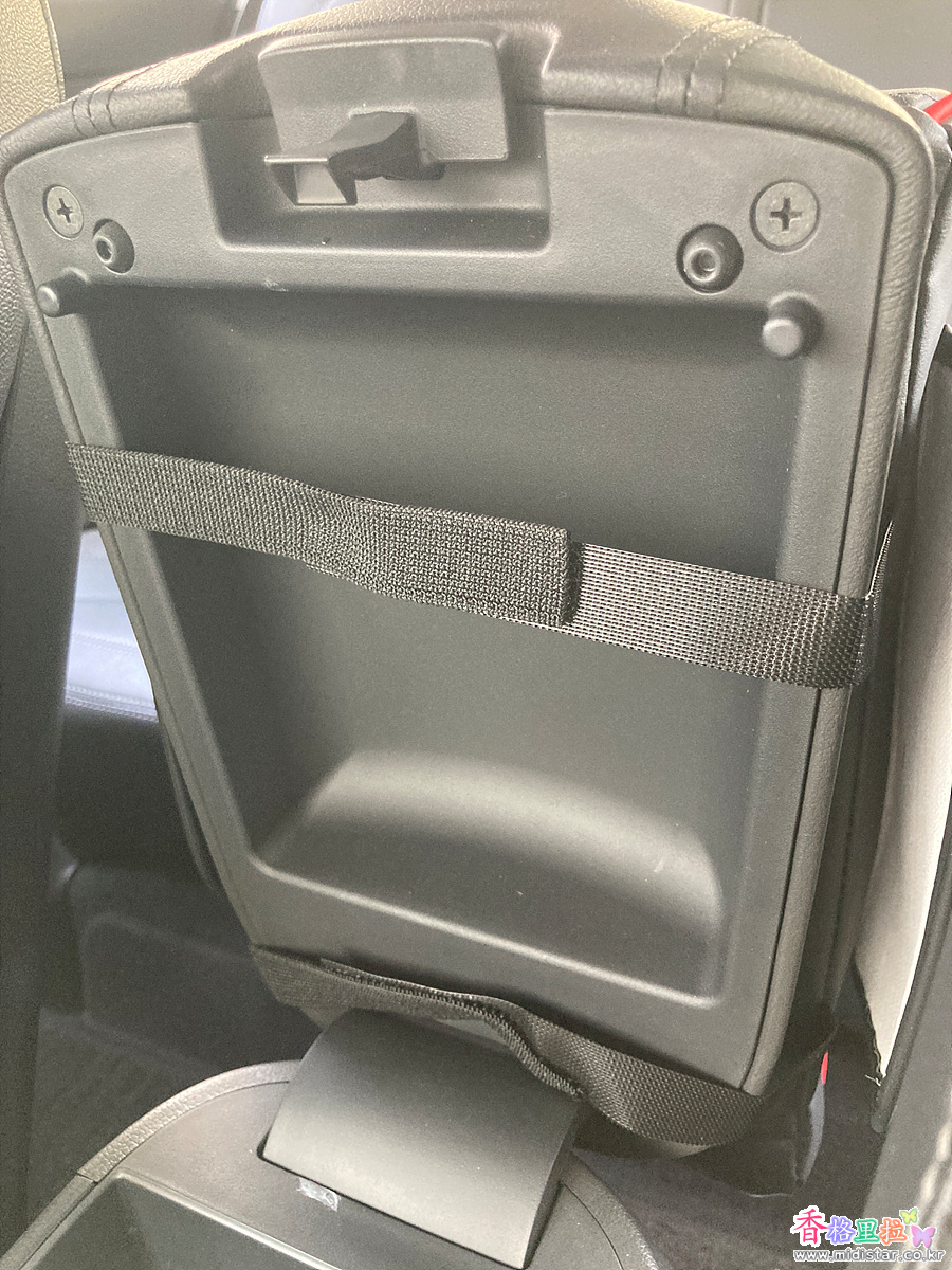 센터 콘솔박스를 열고 찍찍이 끈으로 커버에 씌워준다.