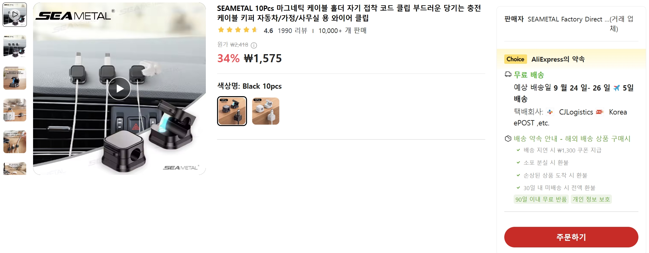 충전기가 바닥에 있는데 책상위에서 충전 케이블로 충전하려면 밑에서 케이블을 집어 올려해야 하는데 매번 불편해서 10개로 구성된 마그네틱 케이블 홀더를 주문.