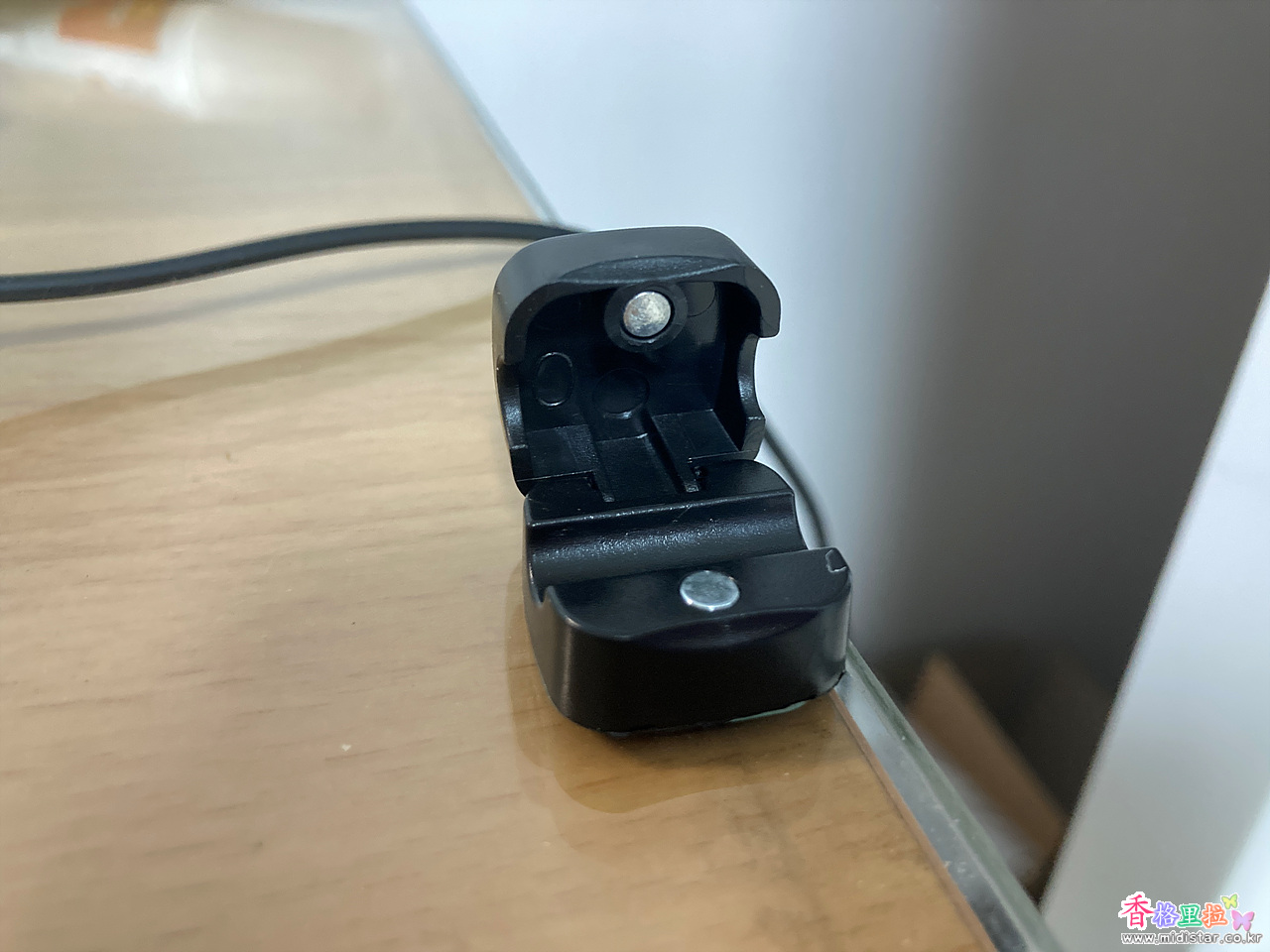 열고 닫을 수 있으며 자석이 있어서 케이블을 올려놓고 닫으면 벌어지지 않는다.