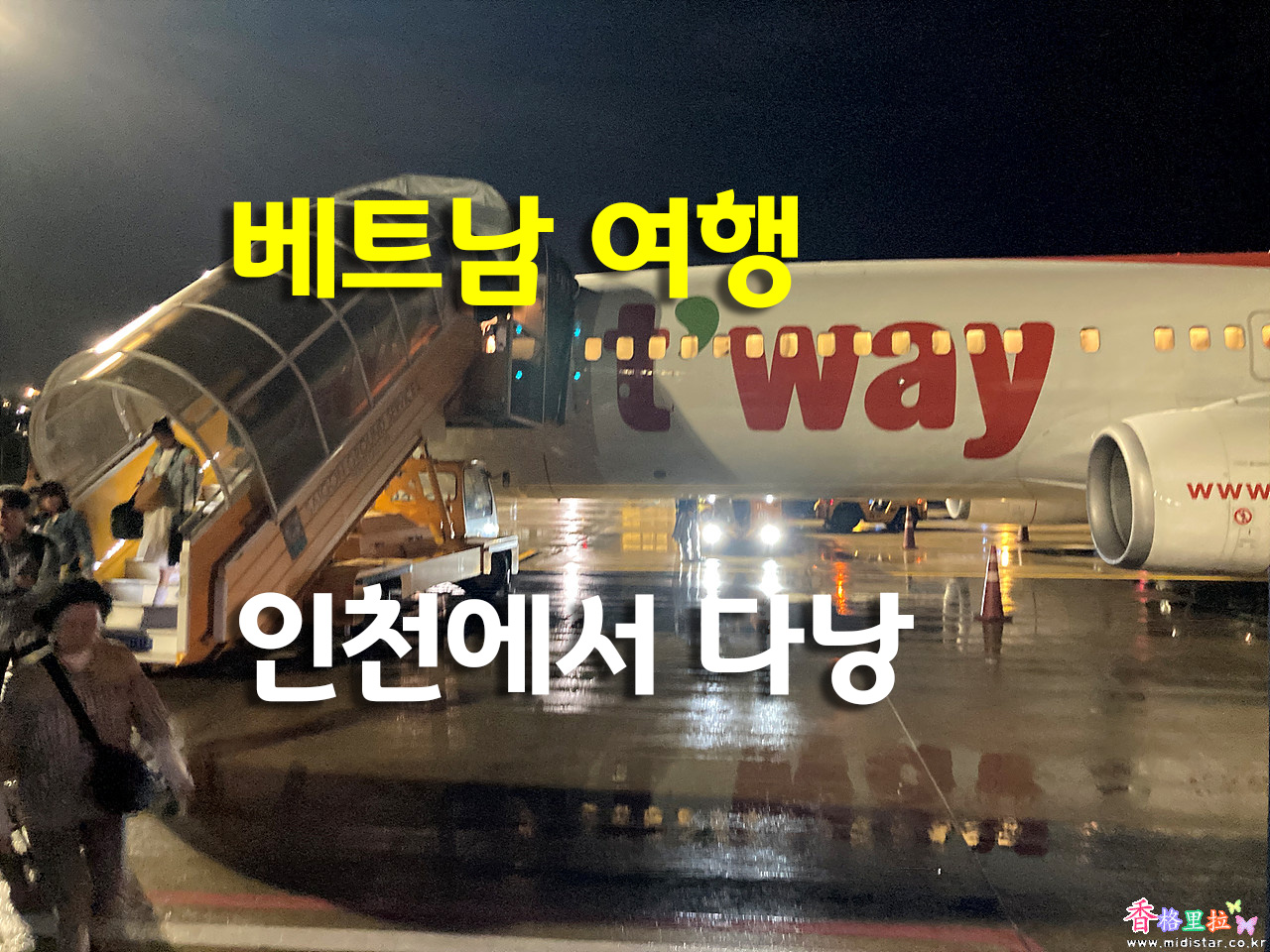 우리가 탄 비행편은 티웨이 항공 TW173으로 저녁 7:50 인천 출발 다낭 22:40에 도착하는 스케줄이다. 베트남이 한국 보다 2시간 늦어 한국시간으로 치면 새벽 00:40에 도착하는 셈이다.