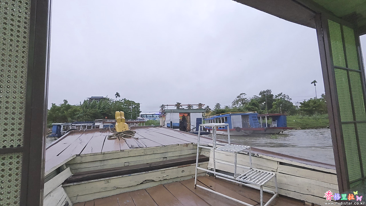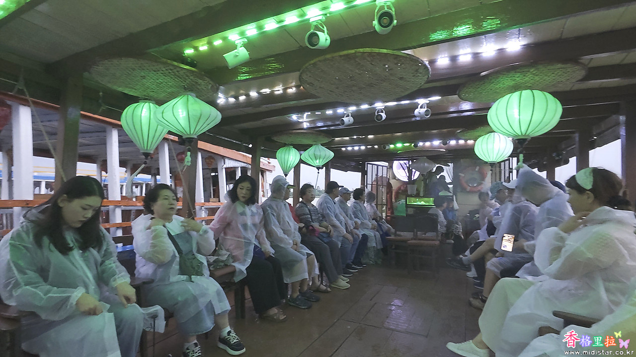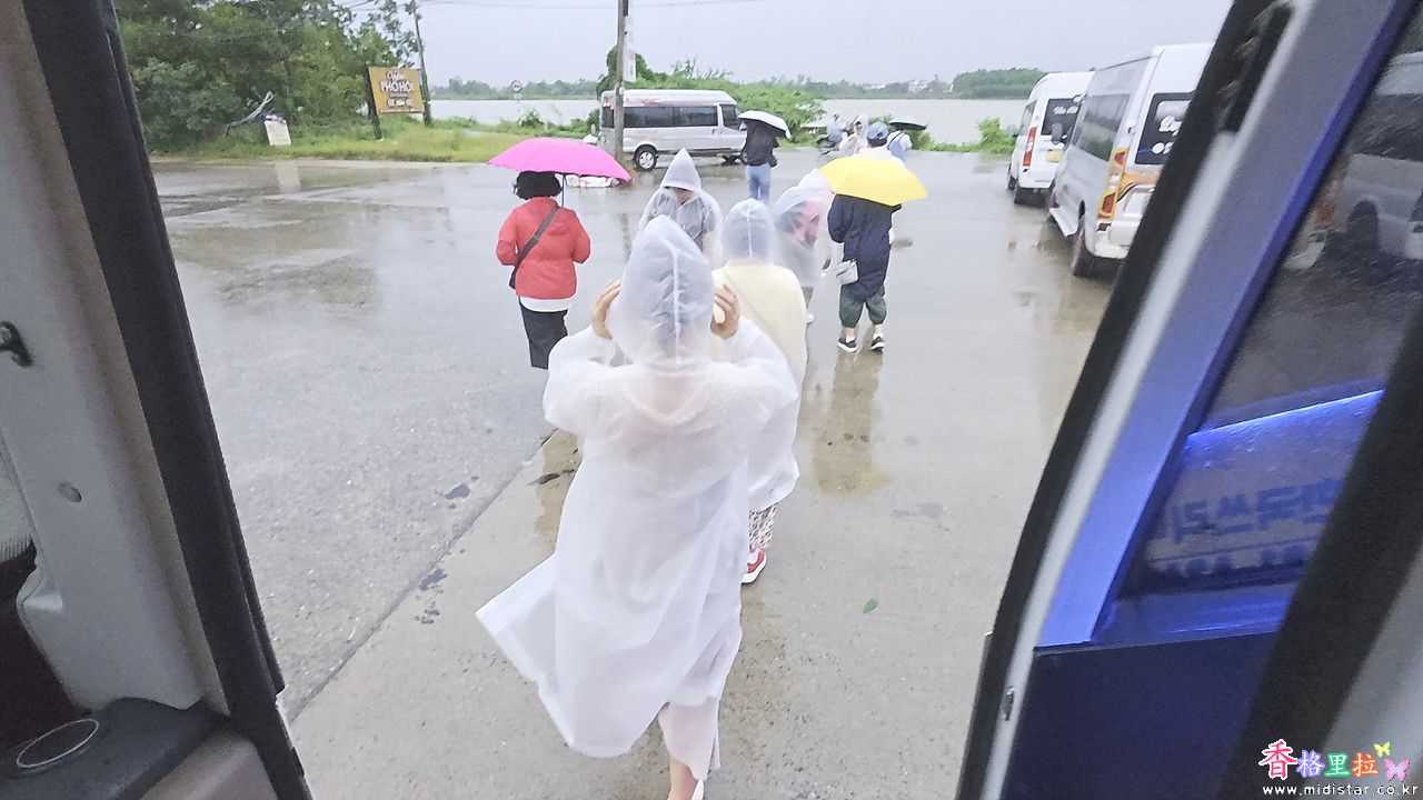 우비를 걸치고 버스에서 내려 가이드를 따라가니 배를 타는 곳이다.