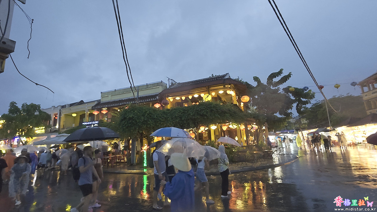 비가 세차게 내려도 사람들이 북적 거린다.