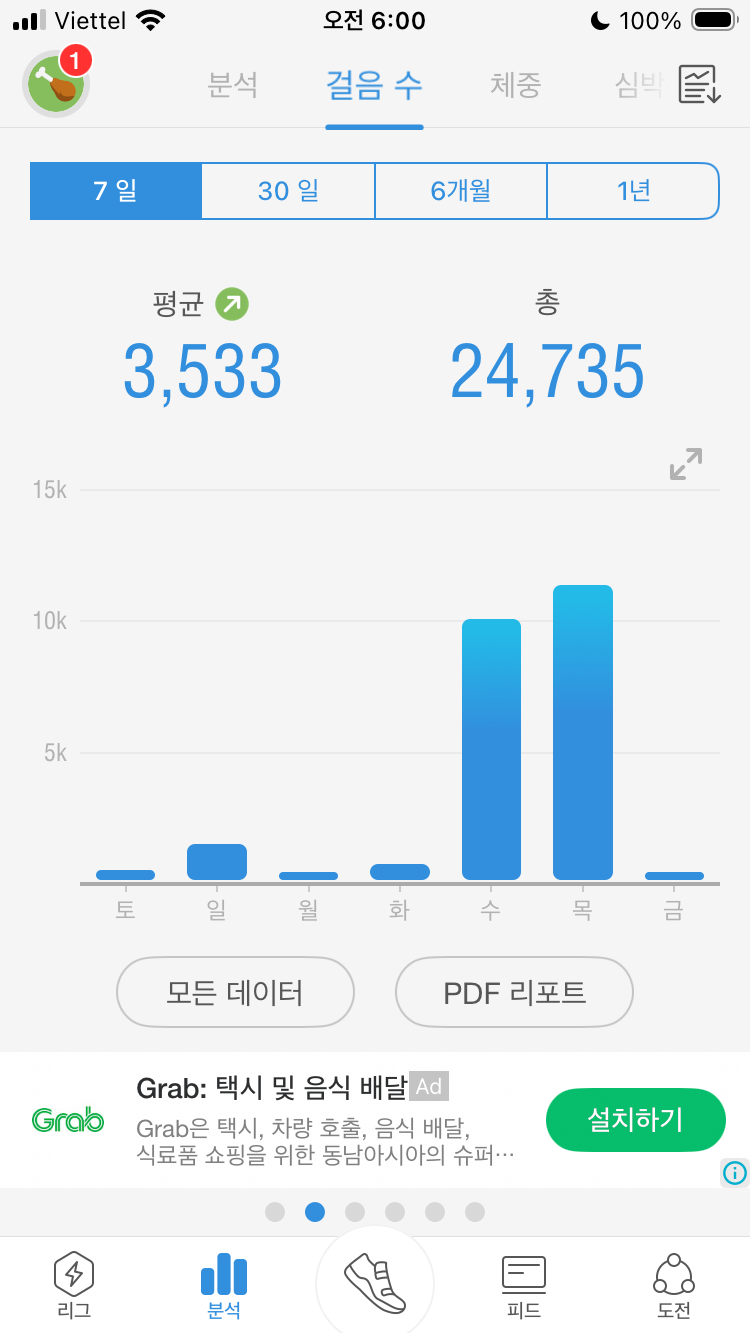 오늘은 만보를 넘게 걸었다.
