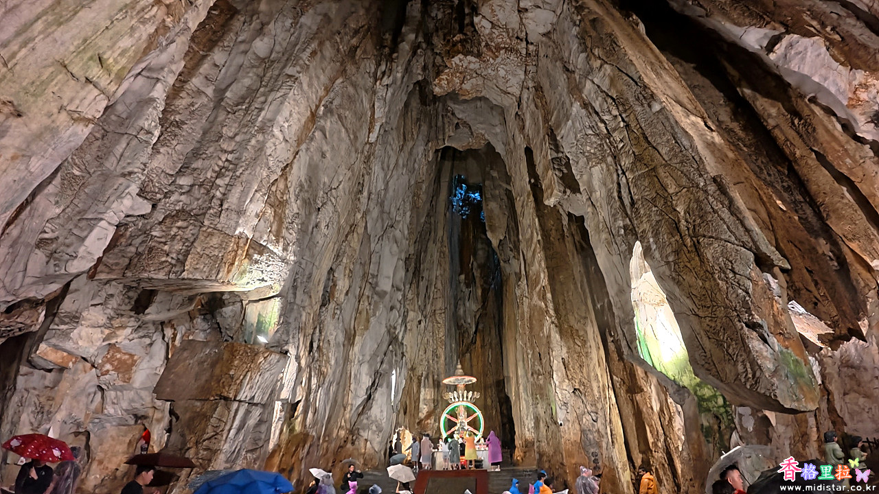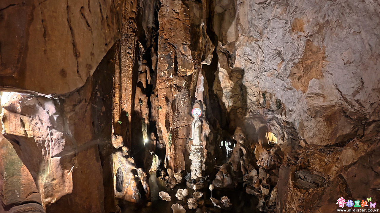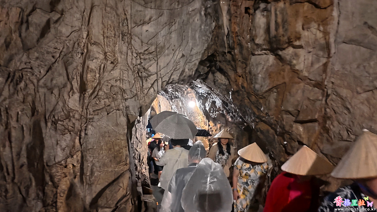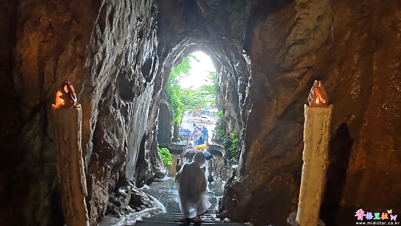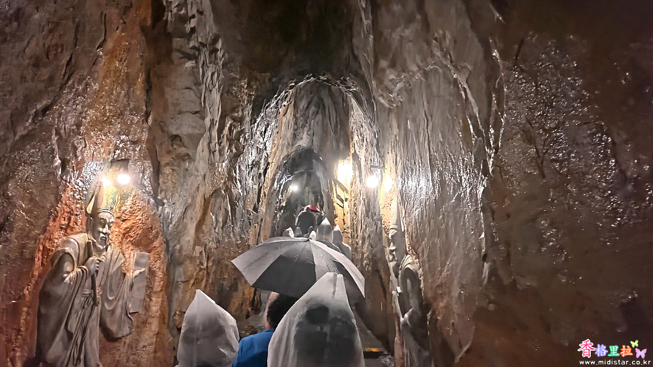석회석 동굴인데 바위 사이에 구멍이 많은지 내리는 비가 스며들어 그대로 비처럼 동굴 안으로 떨어진다.