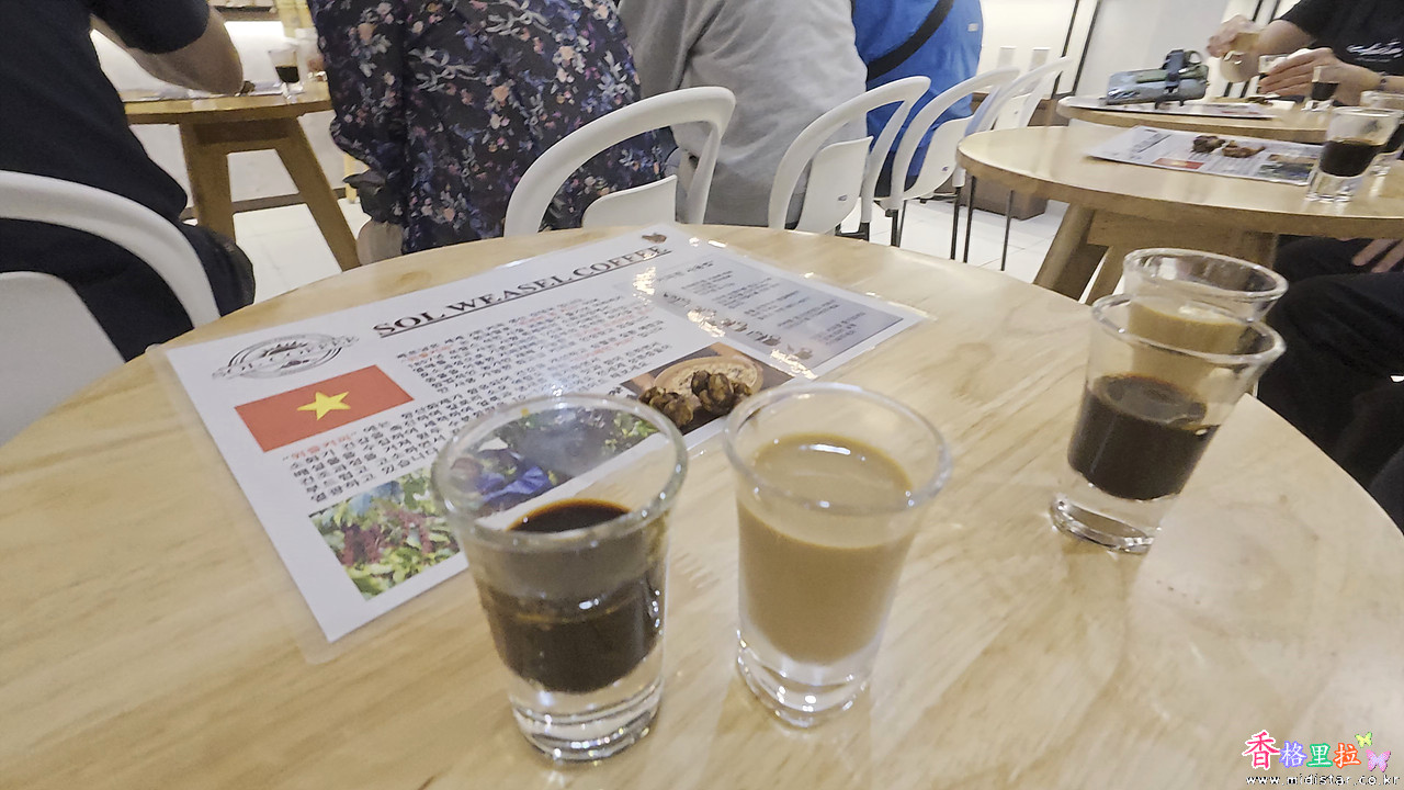 샘플 두 잔을 주어서 마셔보았는데(검은색) 평소에 마시던 커피와는 전혀 다른 맛이다.