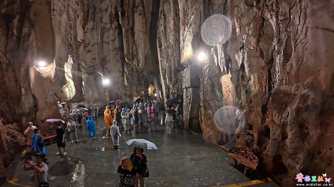 석회석 동굴인데 바위 사이에 구멍이 많은지 내리는 비가 스며들어 그대로 비처럼 동굴 안으로 떨어진다.