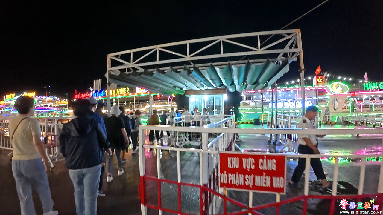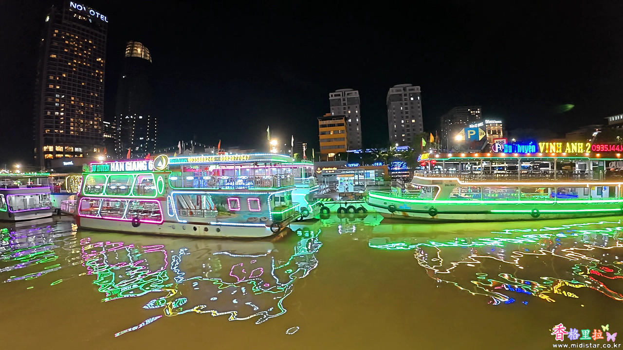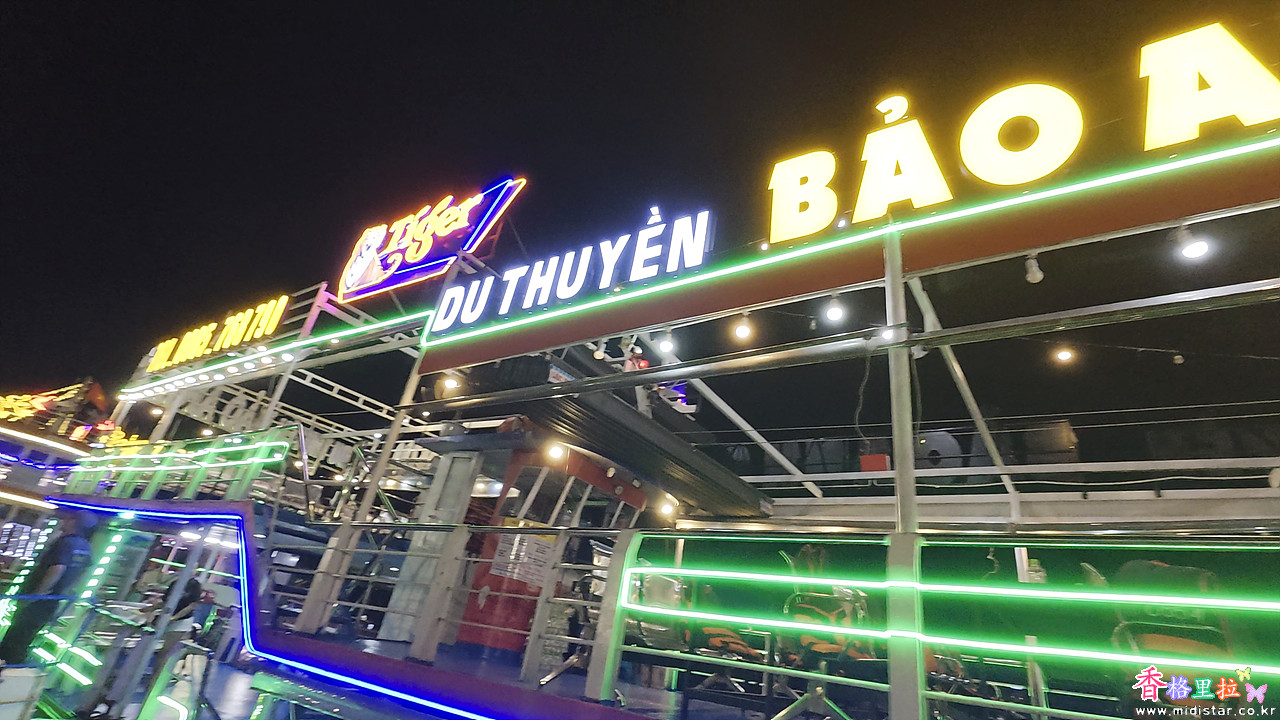 선착장 주차장에 도착하니 휘황찬란한 조명으로 장식한 배들이 즐비하게 늘어서 있다.