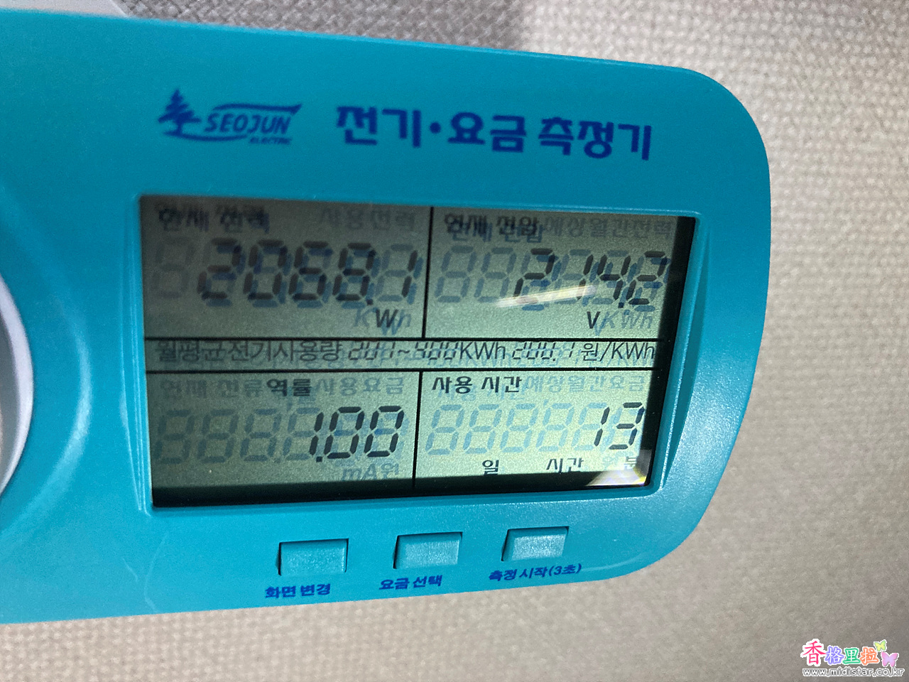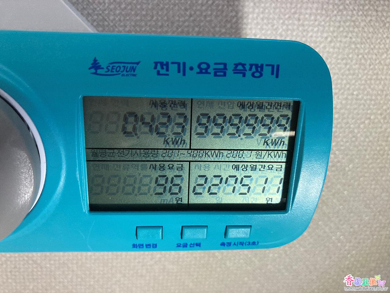 화면변경 버튼을 누르면 사용전력과 예상월간요금이 표시된다.