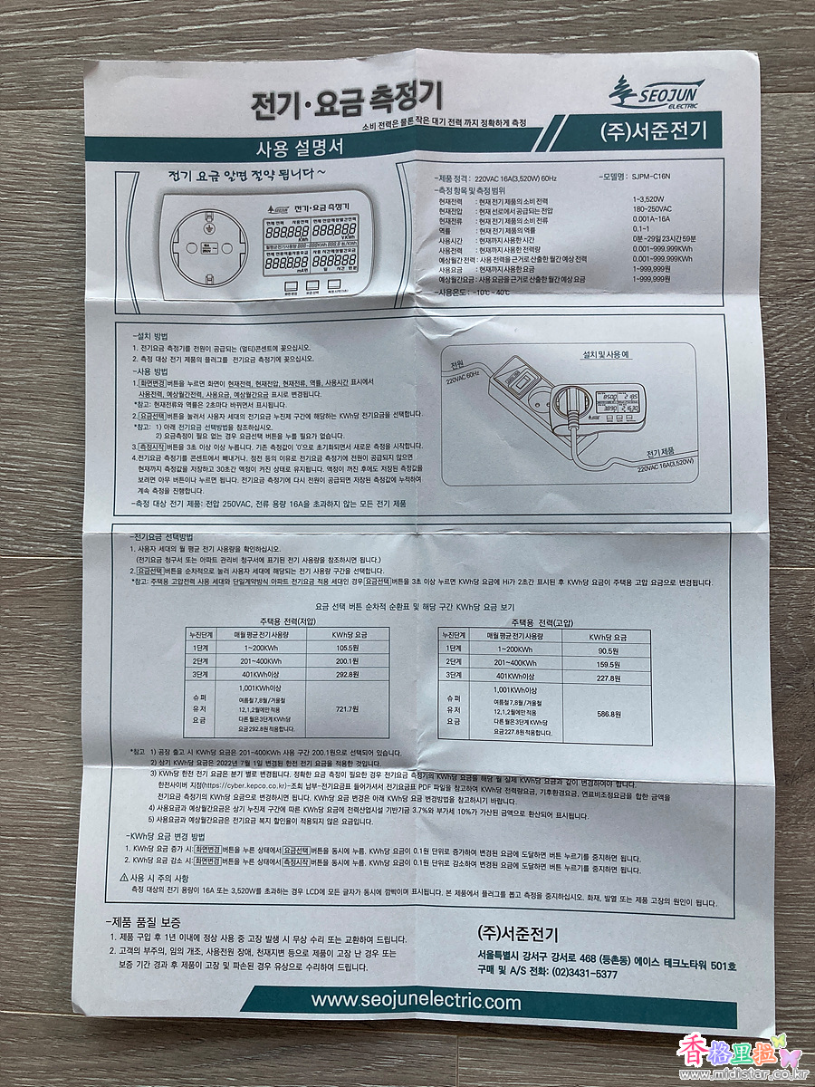 전기 히터 용량이 큰 온풍기를 어느 정도 가동해야 누진 가산제 요금 적용을 피할 수 있을지 미리 예측해보기 위해 "전기·요금 측정기"라는 걸 구입했다.