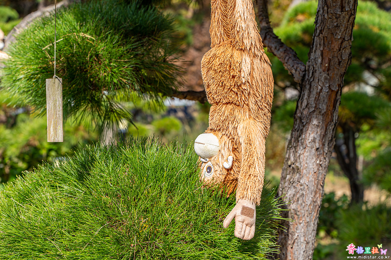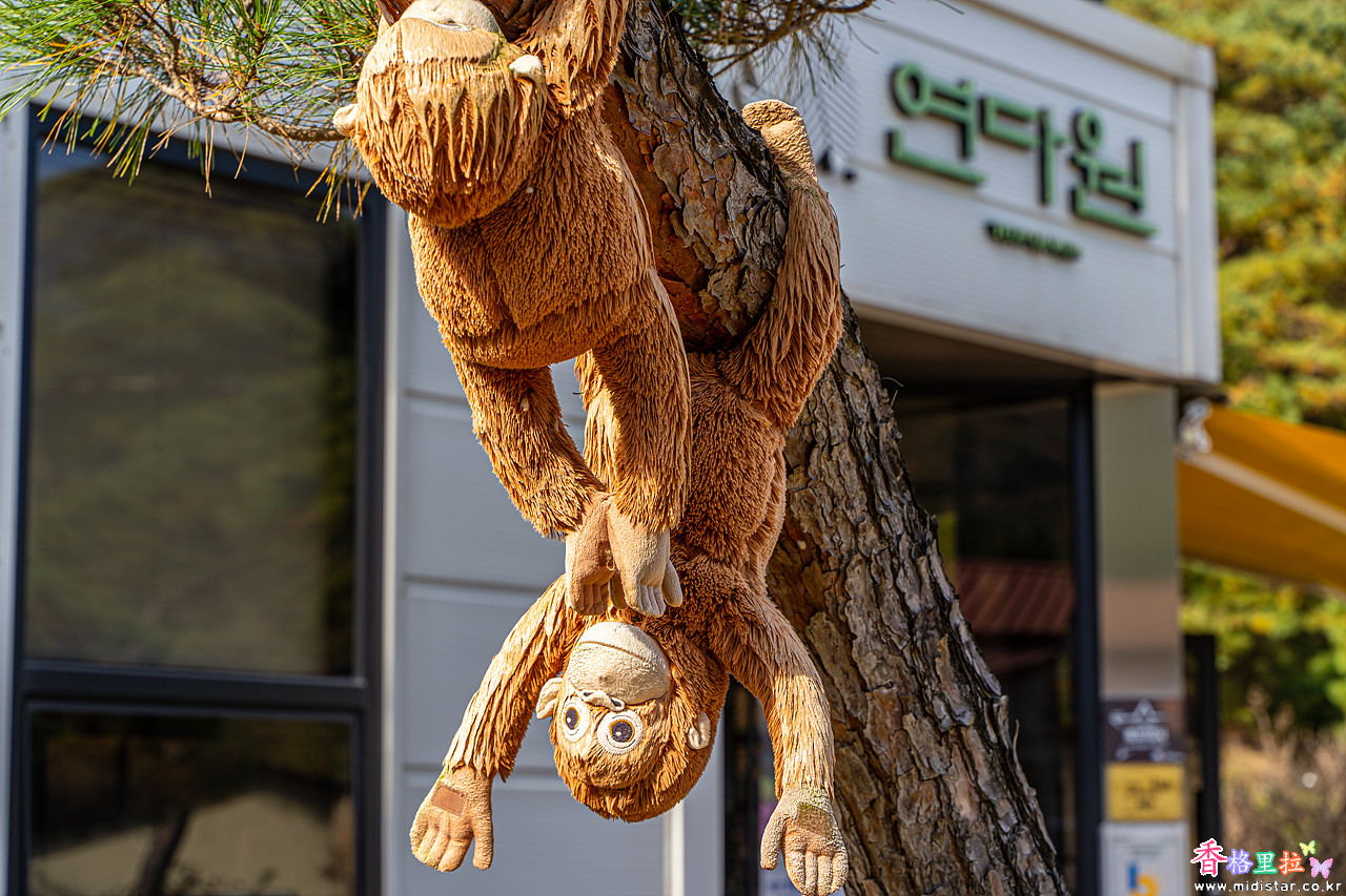 연다원(衍茶園) 들어가는 길 주변 나무에는 원숭이 인형들이 여기저기 걸려있다.