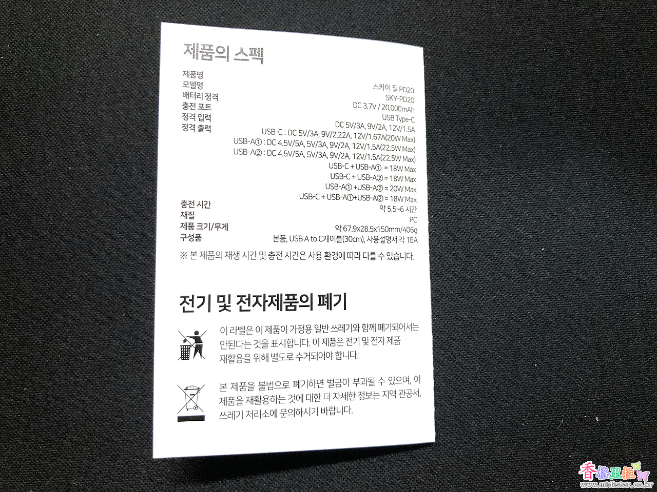 무게는 20,000mAh 용량이라 제법 무직한데 406g 이다.