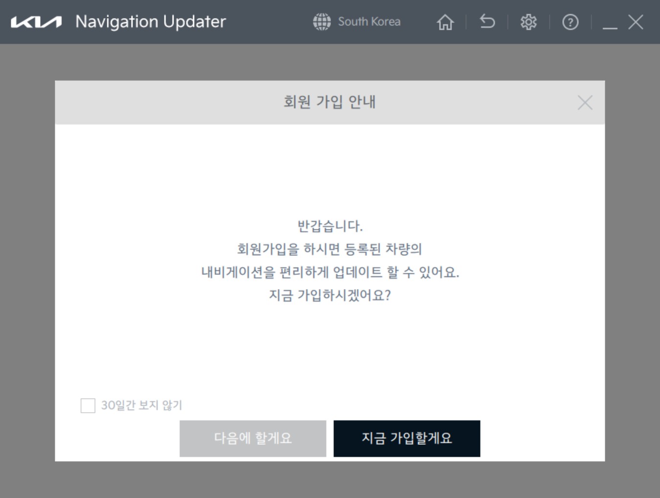다운로드한 NavigationUpdaterInstaller_013.exe 설치 후 실행하면 아래와 같은 화면이 보인다.