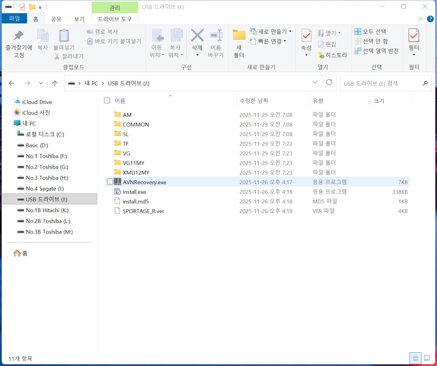 나중에 USB를 지정해서 다시 다운로드하였다.