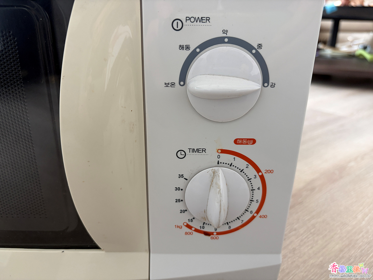 골동품 금성사 전자레인지를 꺼내 사용하다가 아내가 지인이 사용했던 전자레인지를 얻어와 사용 중인 아주 구형 전자레인지 제품 이다.