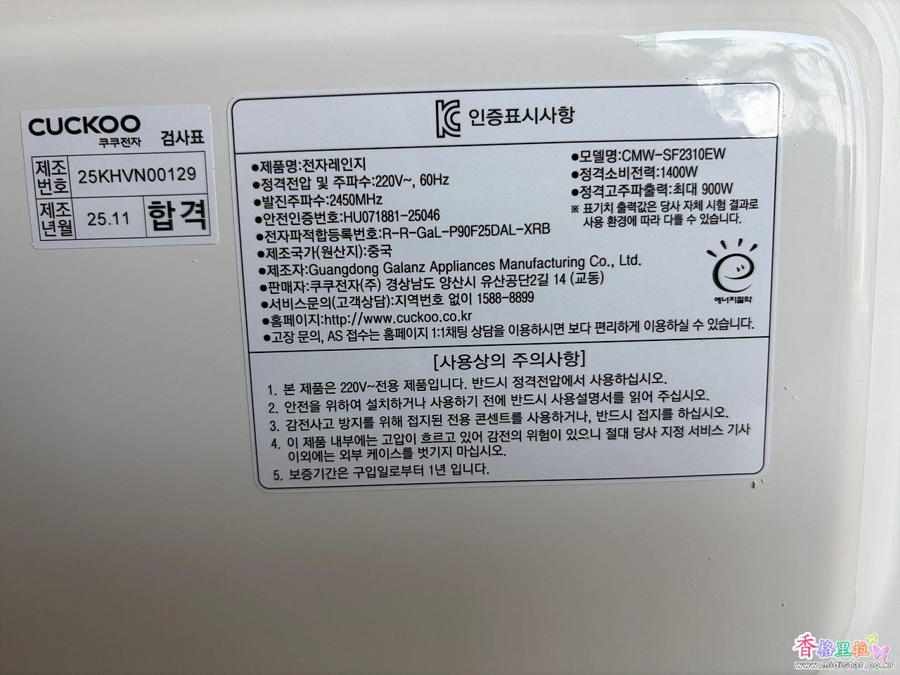 쿠쿠의 모델 CMW-SF2310EW 이란 제품이다.