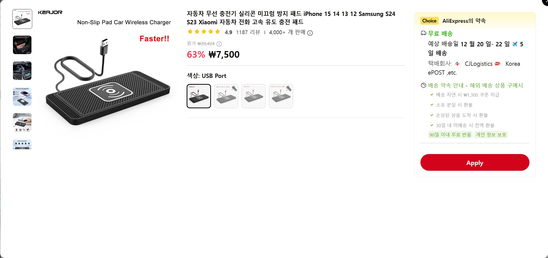 아이폰17의 C type port에 충전케이블을 매번 연결하기 귀찮아서 주문한 무선 충전 패드.