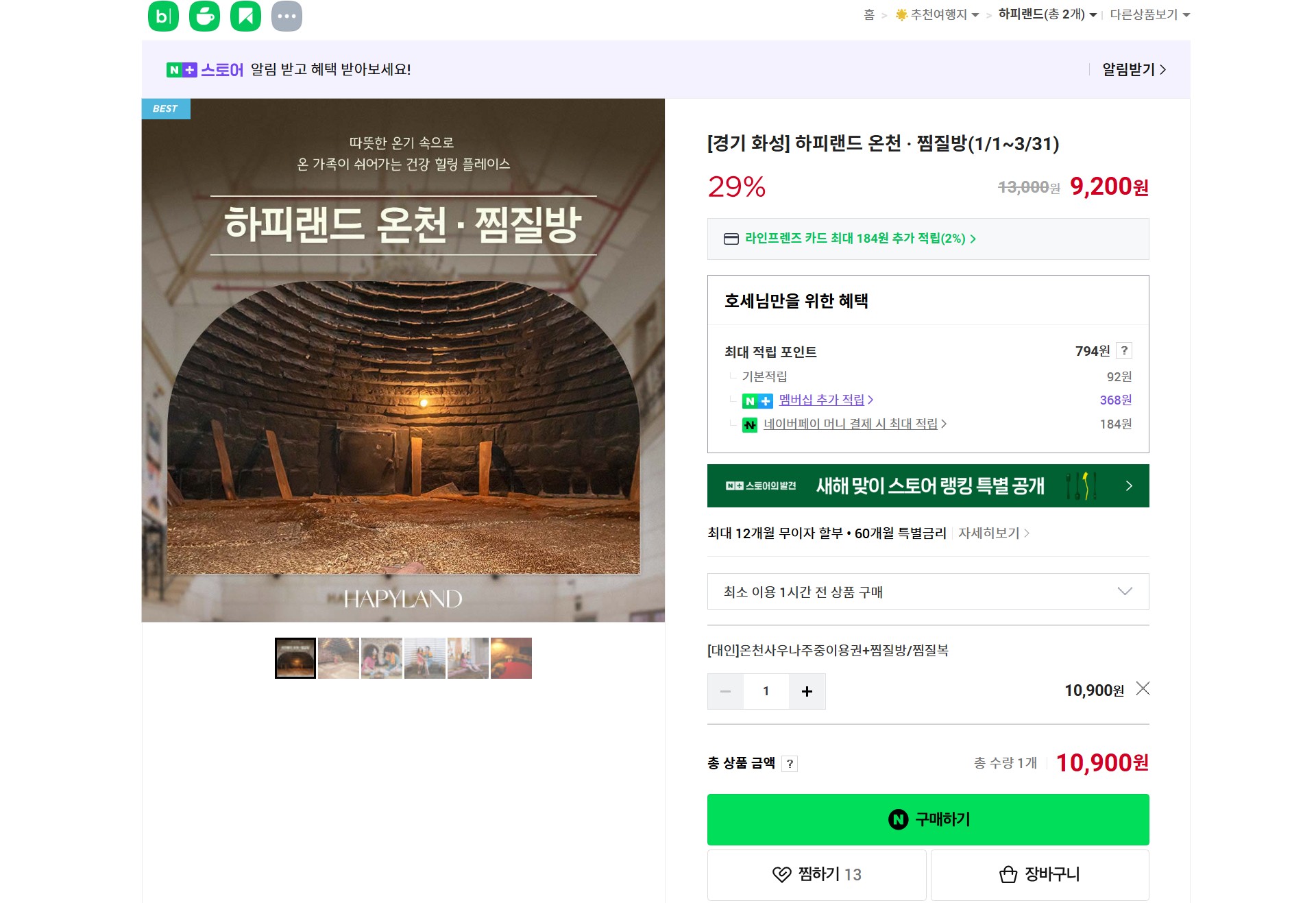 하피랜드 온천 워터파크는 사전예약하면 주중에 어른기준 13,000원을 10,900원에 이용할 수 있다.