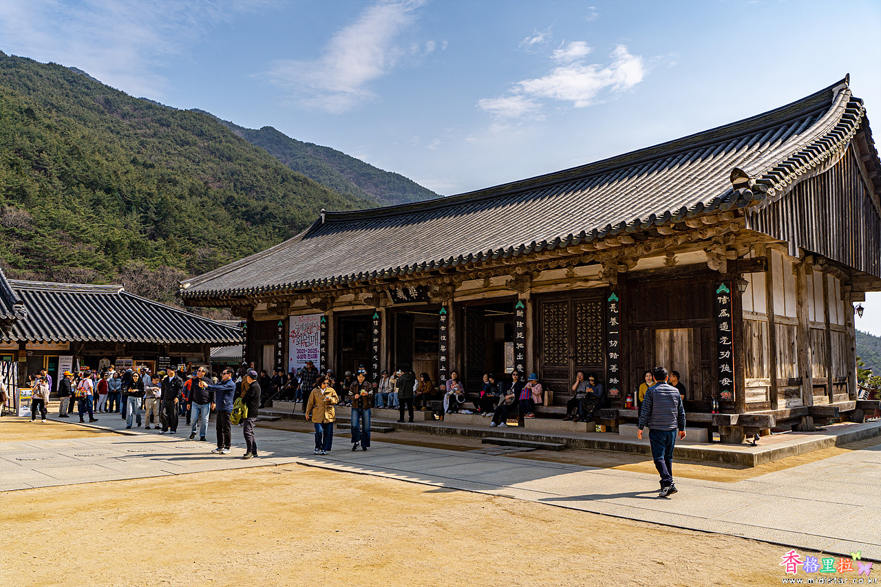 일주문 앞의 홍매화도 만개.
