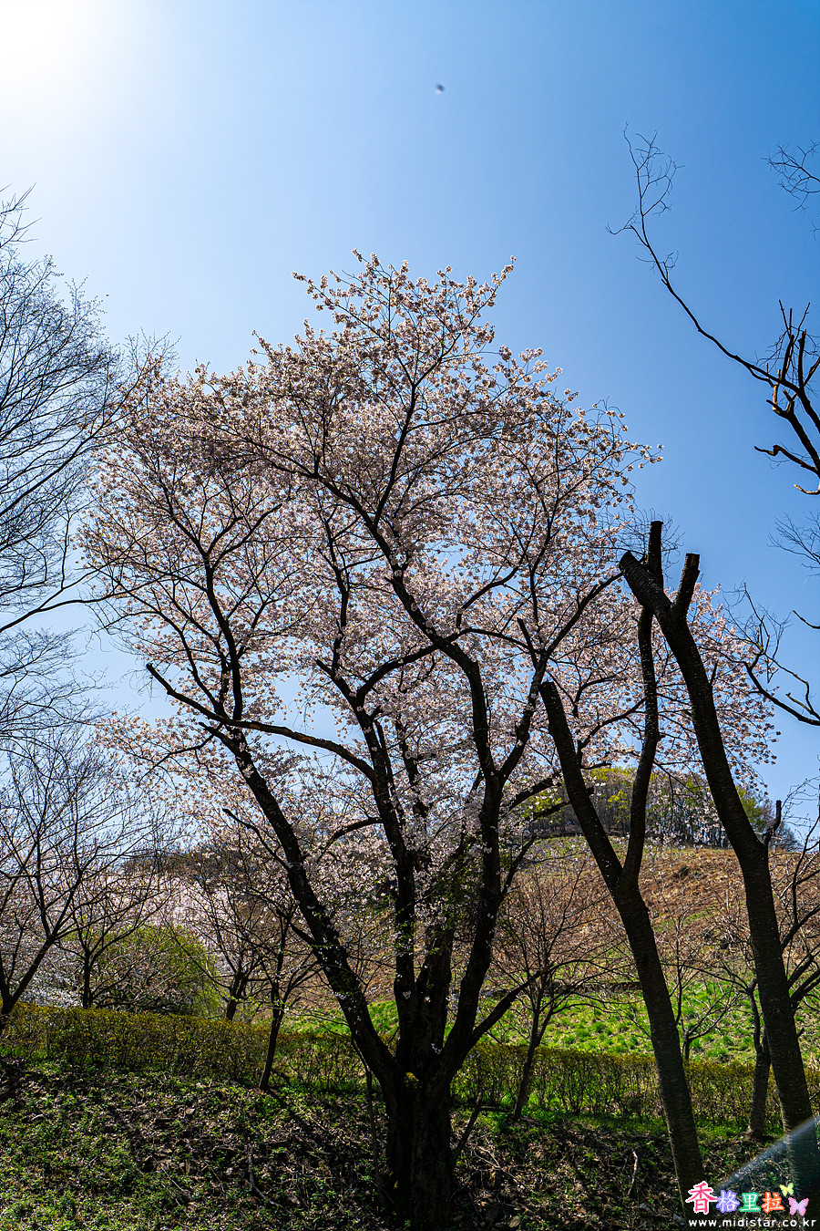 일주문 부근의 벚나무 한그루는 아주 활짝 피었다.