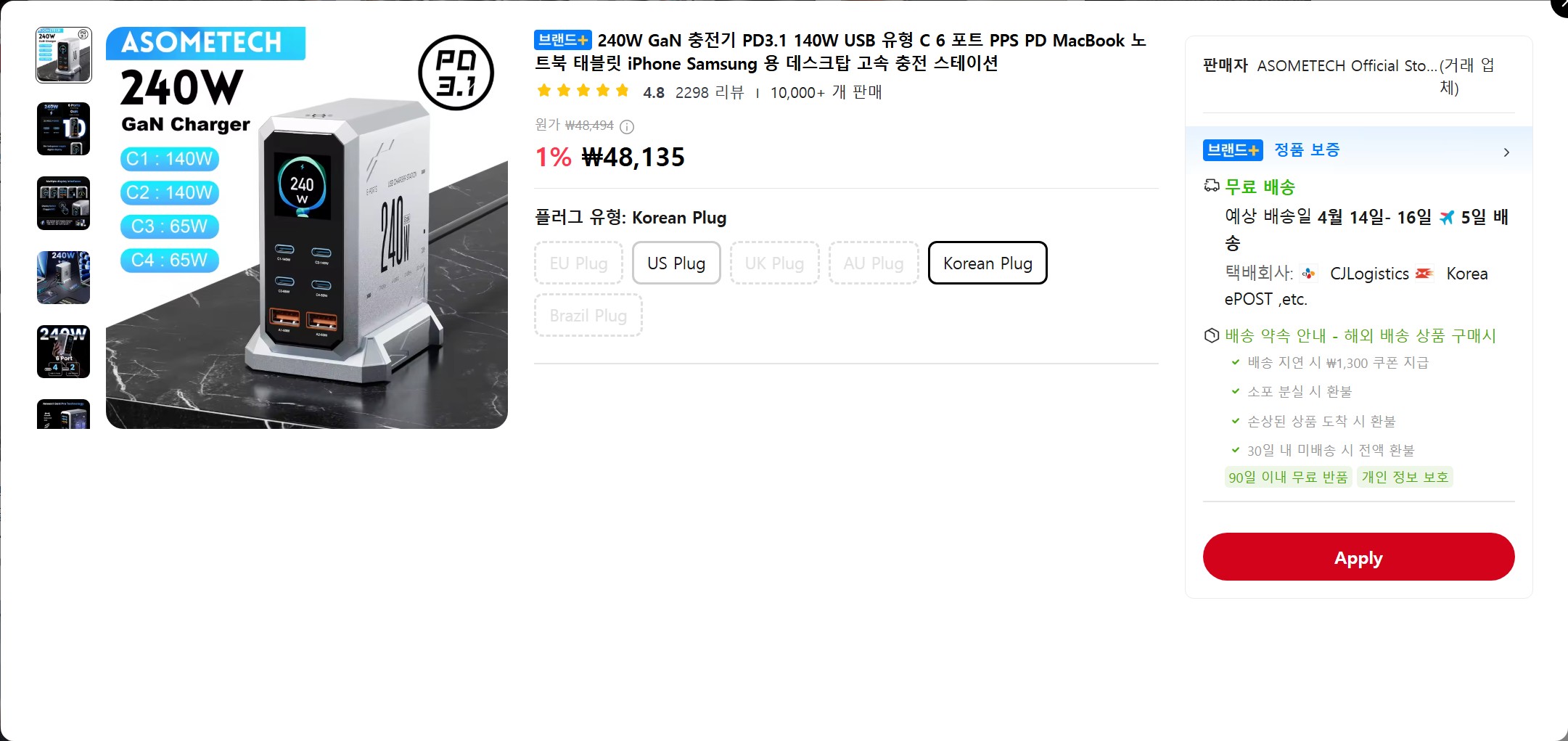 그래서 이번에는 큰맘먹고 비싼 240W GaN, PD 충전기를 구입했다.