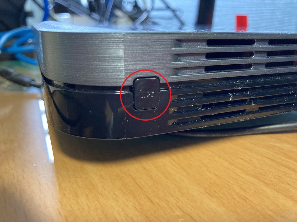 SK Giga WiFi WAV2 후면 오른쪽에는 전원 스윗치가 있는데 아래로 내렸다가 위로 움직이면 꺼졌다가 켜진다.