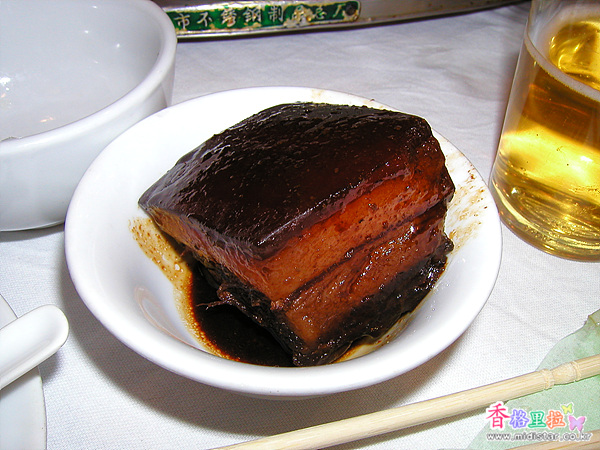 이것이 항주의 대표적인 요리 동파육(東坡肉)이며 돼지 삼겹살에 술, 파, 간장, 생강, 설탕등을 넣고 밀봉한후 두 시간정도 끓여서 만드는 요리이다. |