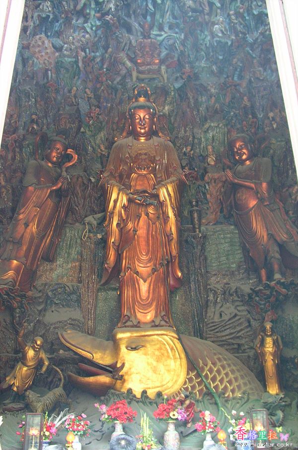 뒷편에 있는 관세음보살상은 발로 잉어를 밟고 있는데