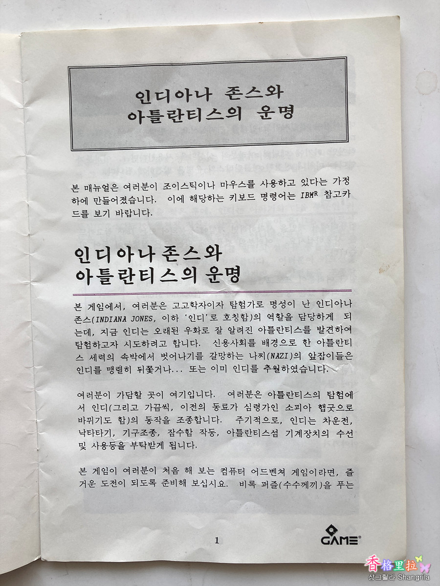 ▲인디아나 존스 게임 설명서