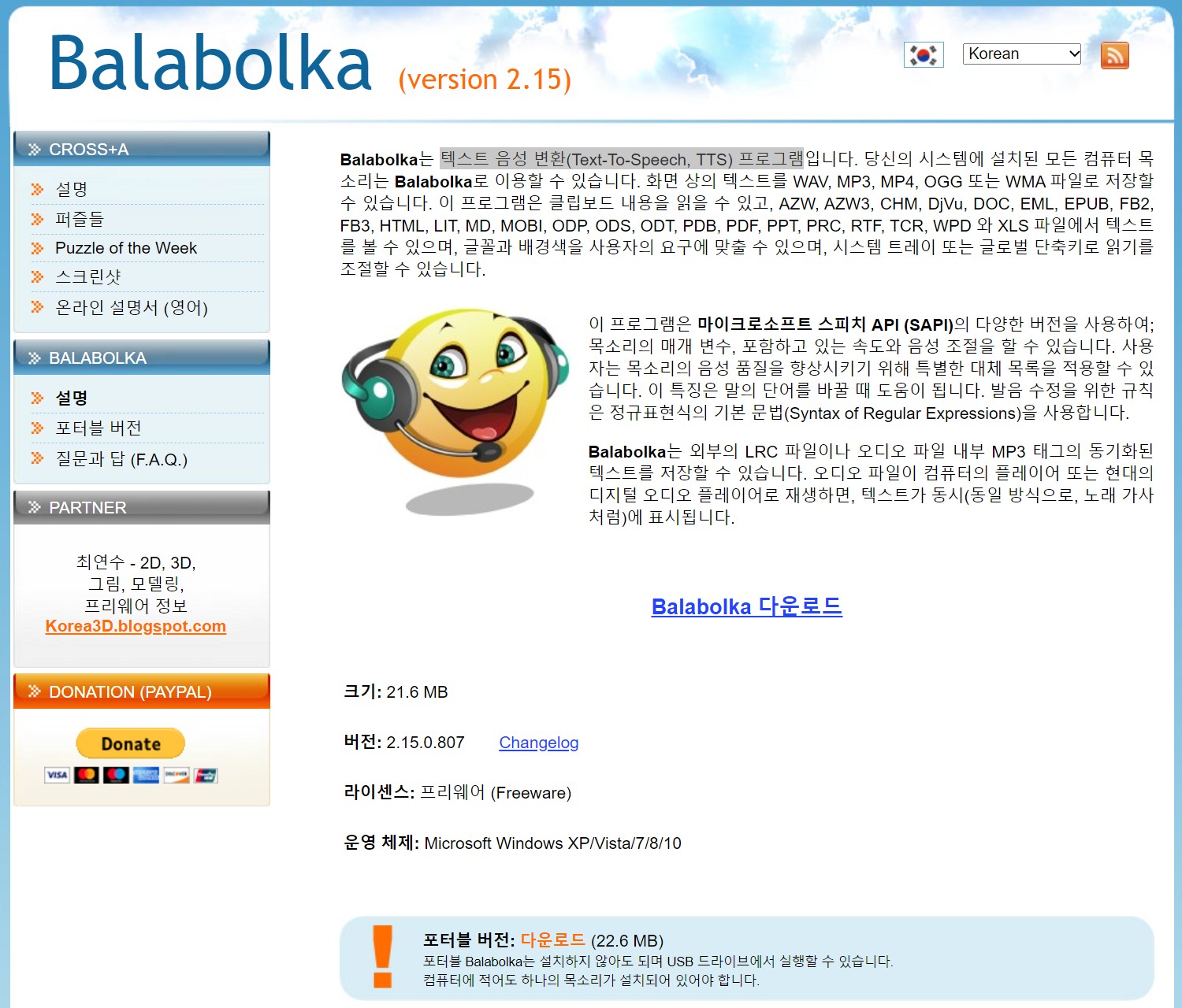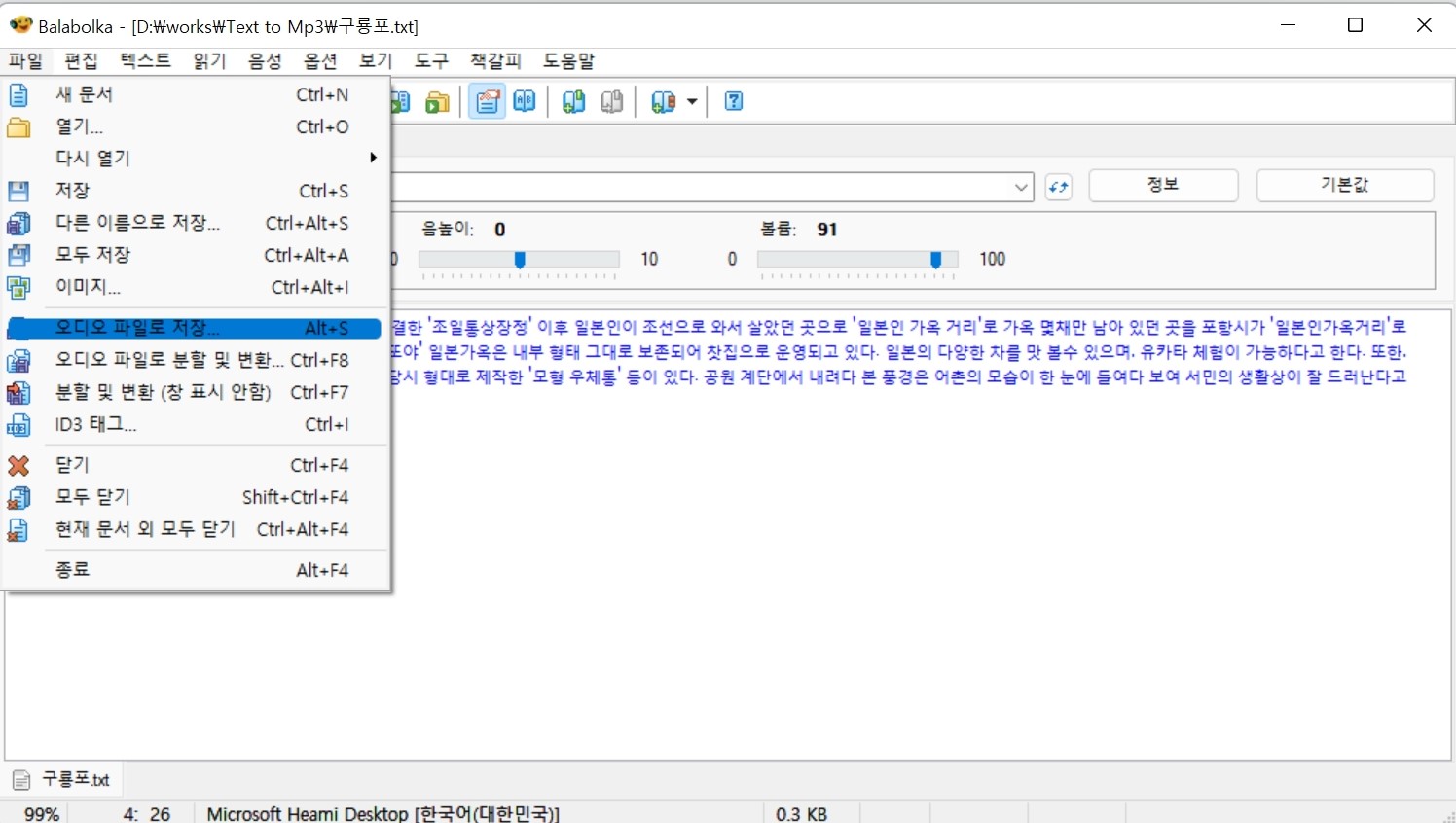 이럴 때 유용한 텍스트 음성 변환(Text-To-Speech, TTS) 프로그램 Balabolka를 사용하면 간단하게 해결 할 수 있다. 사람이 말하는 것처럼 아직 완벽하게 들리지는 않지만 그런대로 시도해볼 만 프로그램이다.