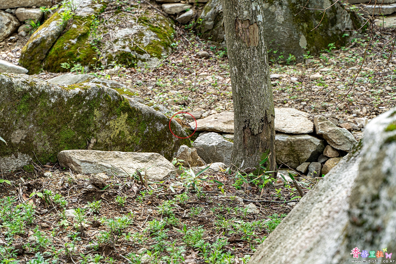 다람쥐 한마라기 잔뜩 긴장한채 눈치를 살피고 있다.